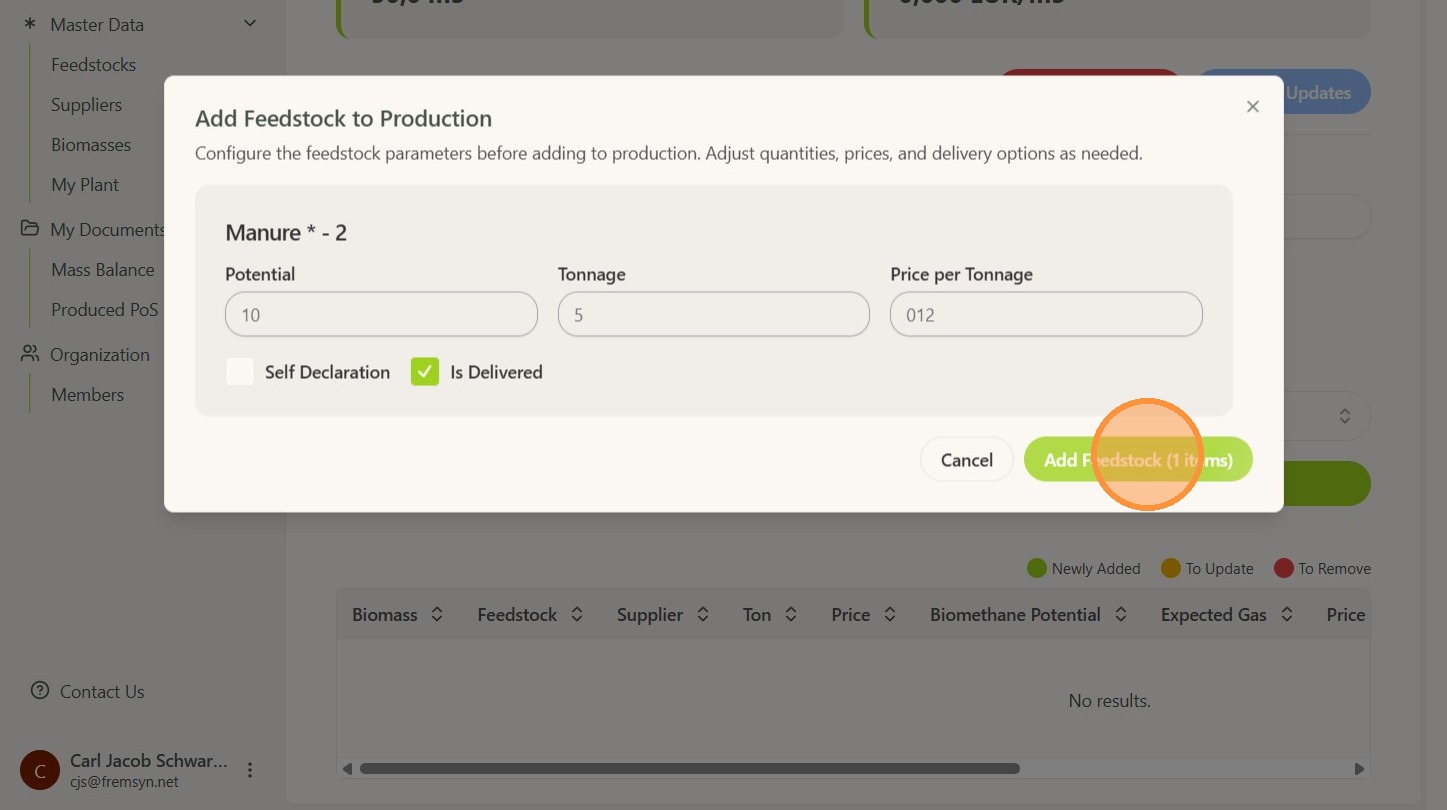 8. Click "Add Feedstock (1 items)"