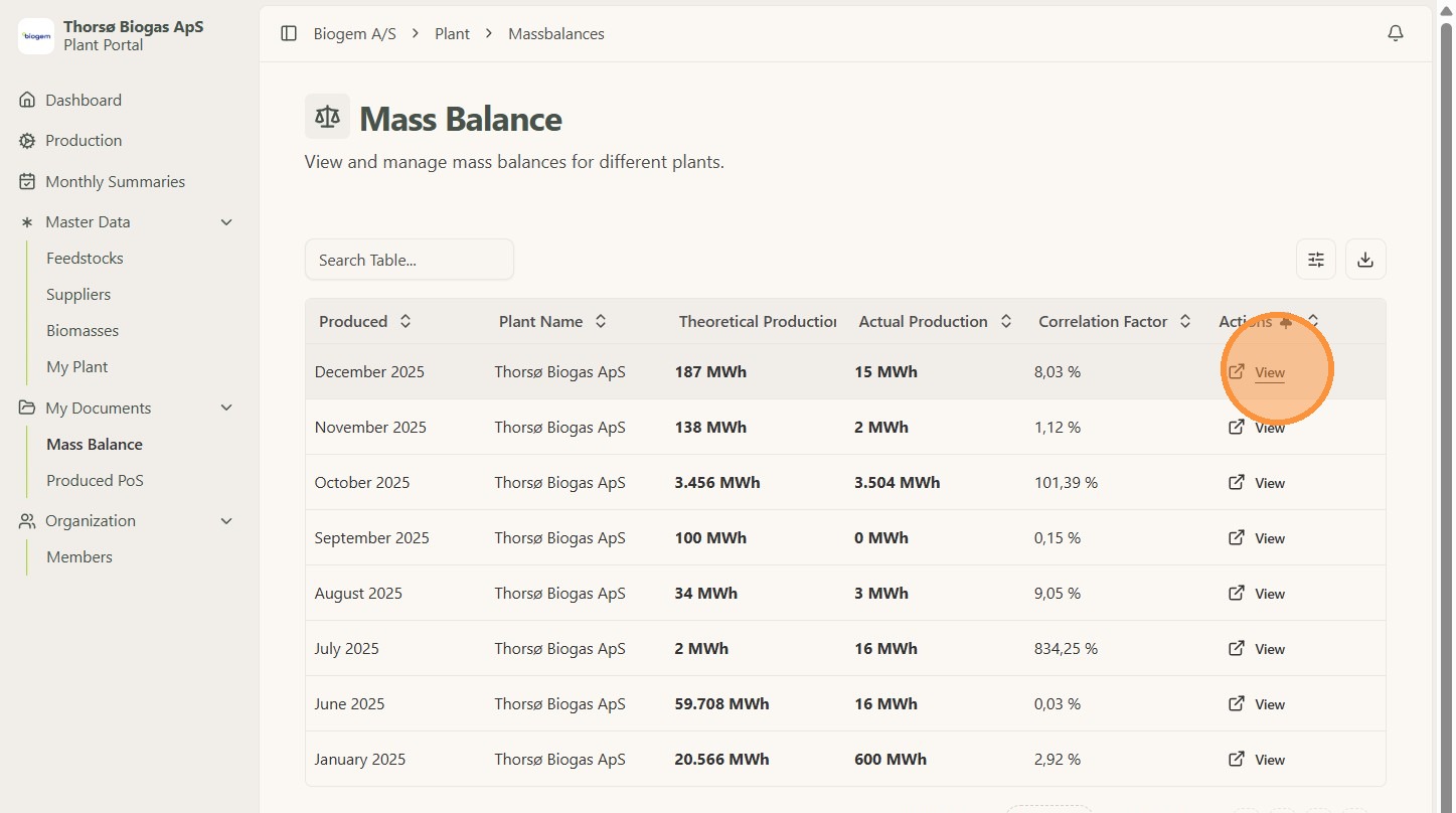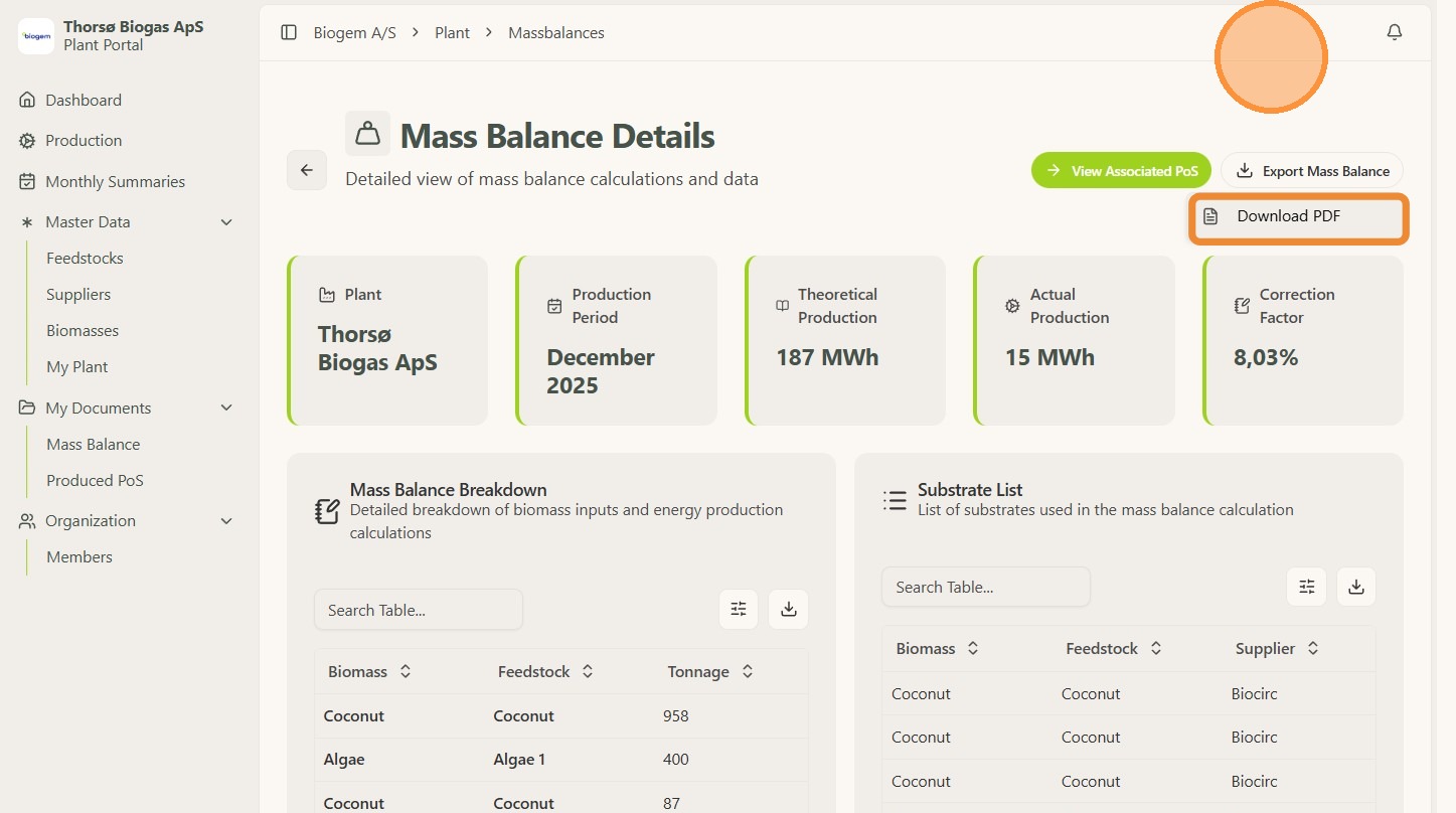 3. Here you can see all the details about the specific month and also download the Mass Balance by Clicking "Download PDF"