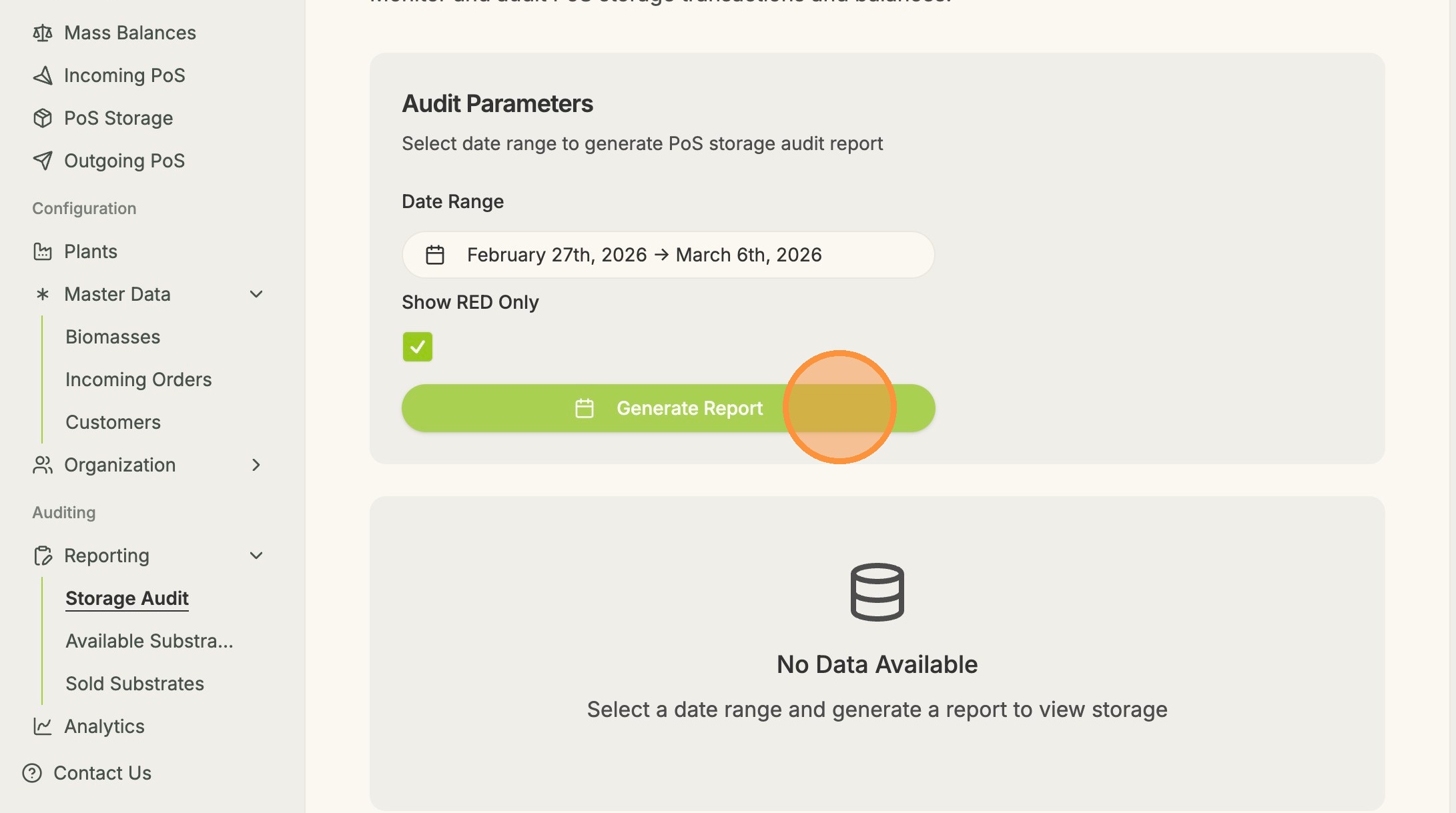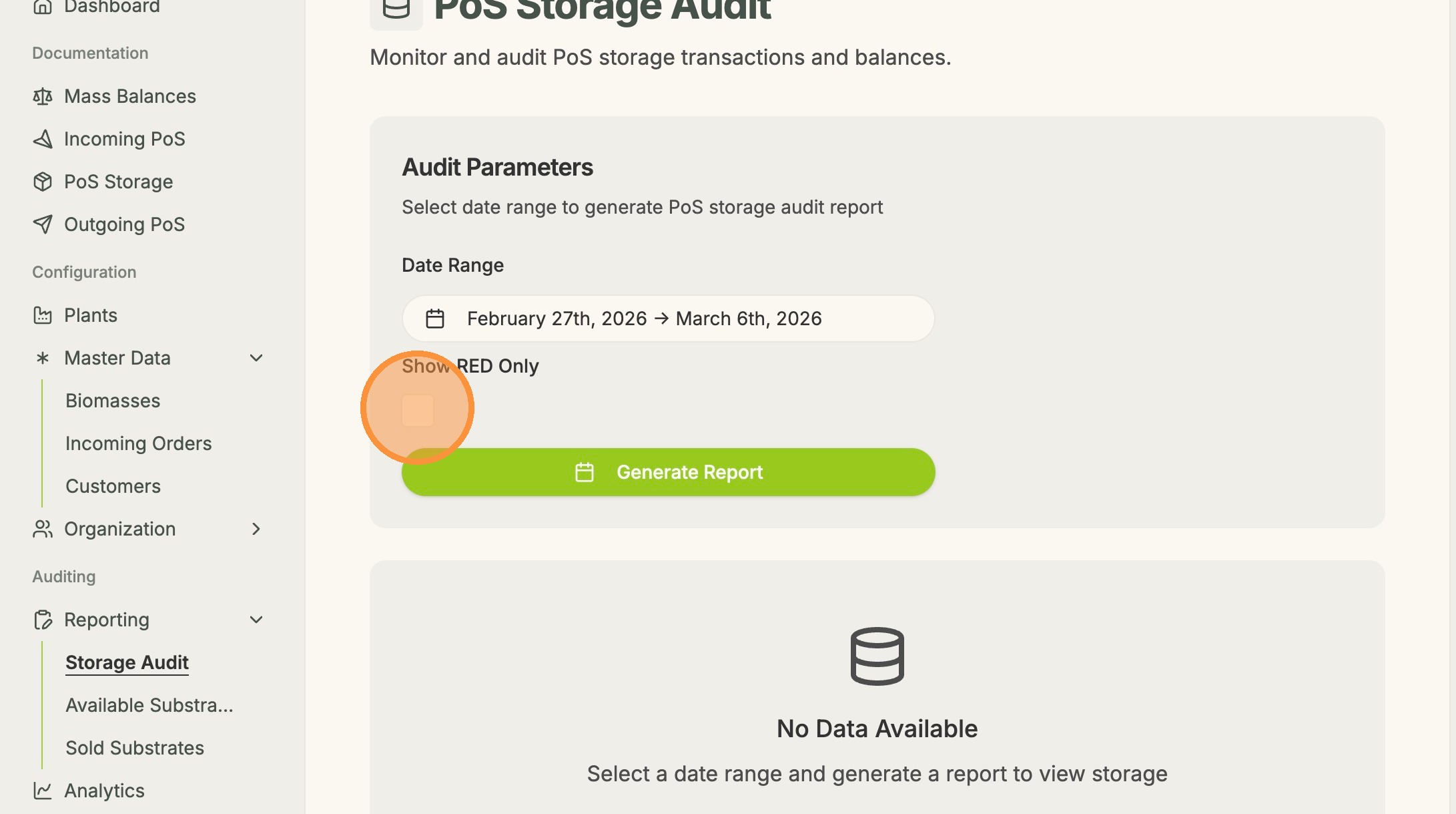 2. Select whether it is a storage audit report